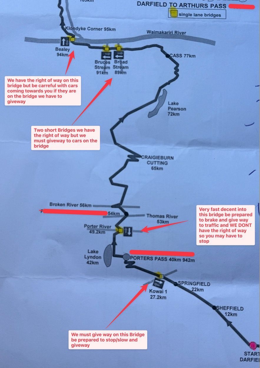 - Finish Location: Just past the 50 km/h speed limit sign before Arthur’s Pass